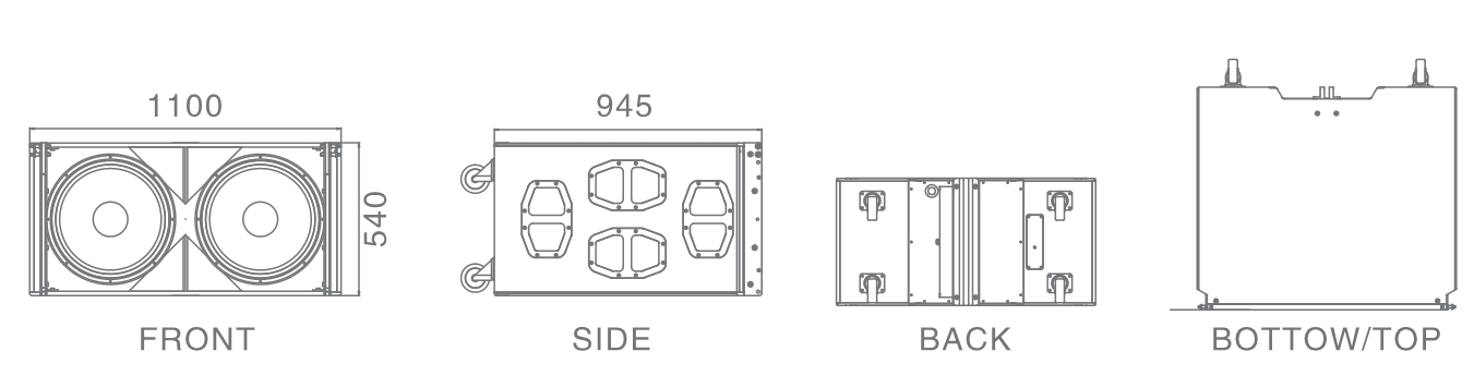 正面:双18英寸钕磁铁低频单元;背部:单18英寸钕磁铁低频单元