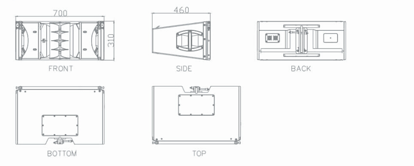 单元结构( Drivers): LF: 2*10英寸钕磁低频单元 / MF: 1*8英寸钕磁单元 / HF: 2*2英寸钕磁高频驱动单元